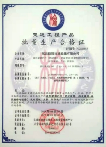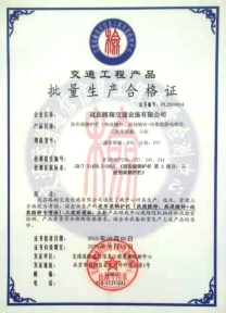 各類(lèi)產(chǎn)品通過(guò)了交通部交通工程監(jiān)理檢測(cè)中心抽檢,符合規(guī)范質(zhì)量要求的各項(xiàng)標(biāo)準(zhǔn),并頒發(fā)了批量生產(chǎn)許可證。